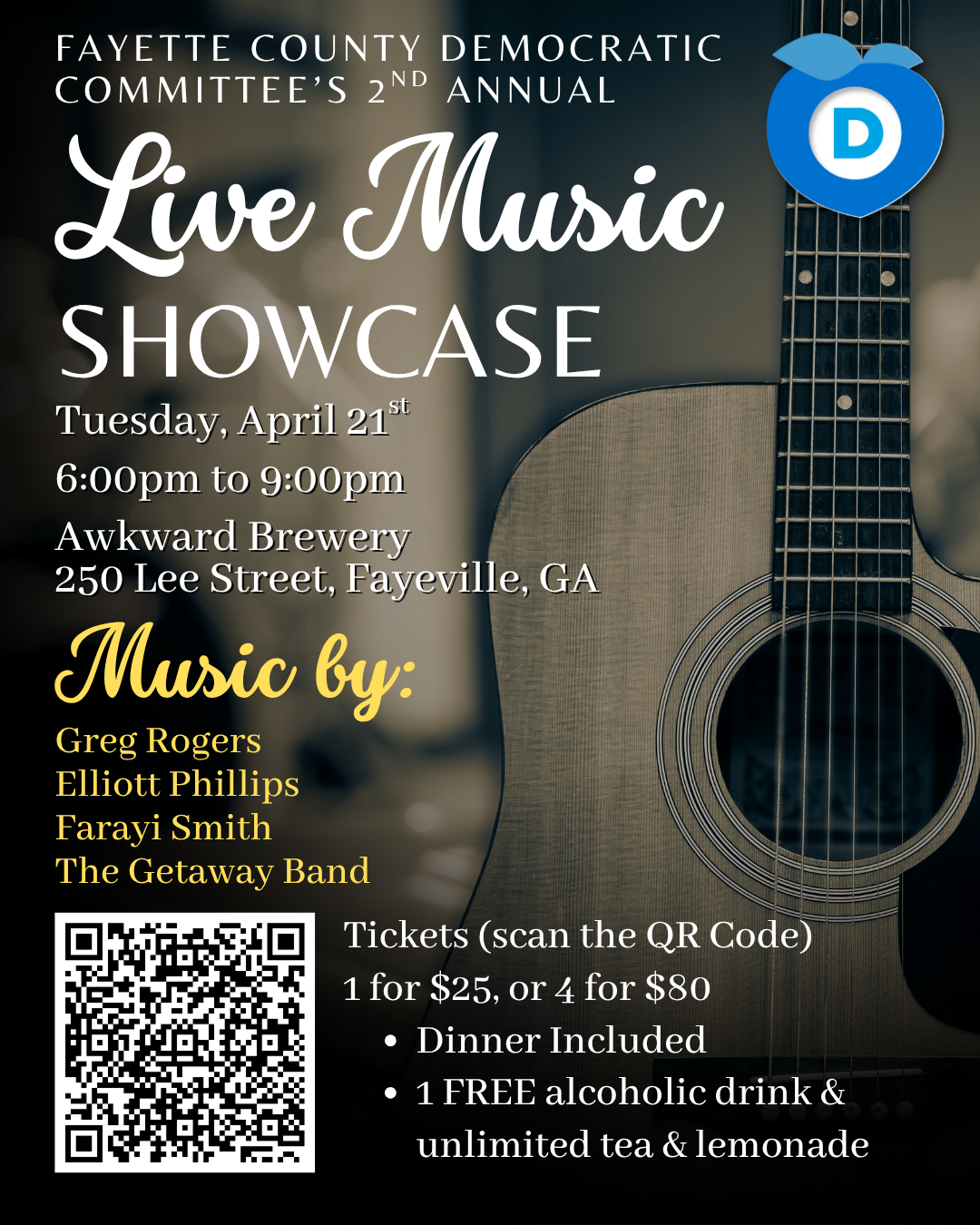 Tickets are available now! You can purchase them directly through our official ticketing partner, click the button below or for quick access on your mobile device, scan the QR code to view more event details and secure your spot. Don't miss out on this fantastic night of music, food, and fellowship. We can't wait to see you there!